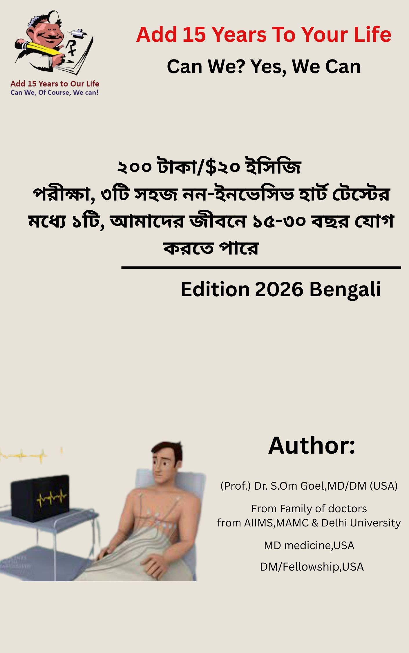 HomeECGRs. 200/$20 ECG Test, 1 of 3 Simple Noninvasive Heart Tests, Can Add 15-30 Years to Our Life-Bengali