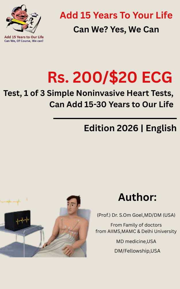 Rs. 200/$20 ECG Test, 1 of 3 Simple Noninvasive Heart Tests, Can Add 15-30 Years to Our Life-English